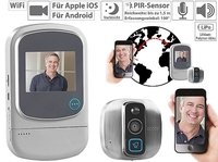 Besucher vor der Tür sehen und Gegensprechen Somikon Digitaler HD-Türspion VTK-400 mit Klingel, Bewegungsmelder, WiFi und App, www.pearl.de- Leitet Klingelsignal…