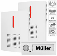 Dank Funk-Verbindung ohne Kabelverlegung CASAcontrol Funk-Türklingel + 2 Empfänger FTK-130, Licht & Ton Signal, IPX4, weiß, www.pearl.de- Bis zu 100…