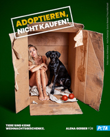 Alena Gerber & Onyx kauern im Schmutz (Bildquelle: @ Marc Rehbeck für PETA Deutschland e.V.)Klare Message, ungewohnter Look! Topmodel und…