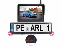 Einfach nachgerüstet ohne zu bohren: Das Rückfahr-System mit Abstandswarner Lescars Solar-Funk-HD-Rückfahrcam Nummernschildhalter PA-720.slr www.pearl.de- Ultraschall-Abstandssensoren für akustische Abstands-Warnung - Kamera-Auflösung…