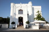 Vor der Blomenburg in Selent: Nina Marlisa Lenzi, Sven Hannawald und Nova MeierhenrichDie auf stressassoziierte Erkrankungen spezialisierte Privatklinik in Selent…