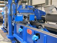 Schälen, Richten und Polieren von Vollmaterialstangen Der Auslaufbereich einer Schällinie des Typs PSP mit der Laser-DurchmessermessungAuf den beiden Messen Wire…