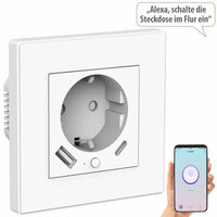 Luminea Home Control 2in1-WLAN-Unterputzsteckdose SF-665.up, www.pearl.de- 2 USB-Geräte gleichzeitig laden: die Steckdose bleibt frei - Für Standard-Unterputz-Dosen geeignet - Auch…
