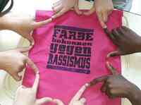 Die Bonner Privatschule HEBO beteiligt sich an der Initiative "Schule ohne Rassismus - Schule mit Courage". Bedruckte Turnbeutel mit Händen…