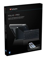 Folios für iPad 2 und die neuen Generationen mit integrier-ter, abnehmbarer Bluetooth™-Tastatur Folio Pro mit Bluetooth-Tastatur von Verbatim – verwandelt…