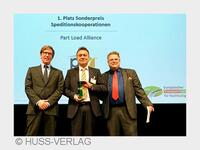 Europäischer Transportpreis für Nachhaltigkeit 2016 von li: Thomas Pietsch (Huss-Verlag), Heinz Hintzen (PLA), Torsten Buchholz (Huss-Verlag) (Bildquelle: © HUSS-VERLAG)München/Eschweiler -…