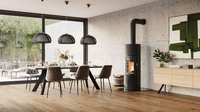 Auch wenn das Feuer längst erloschen ist, bleibt der Wohnraum dank Speicherblock aus Spezialschamotte, angenehm temperiertKontrast aus Naturstein und schwarzem…