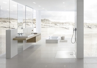 Duschen auf edlem Stahl/Email jetzt noch bequemer: Wandseitige Entwässerung sorgt für durchgängige Standfläche Ablauf wandseitig: BETTEFLOOR SIDE mit durchgängiger Standfläche…