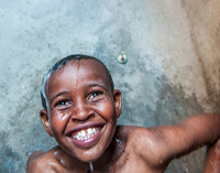(Foto: Stiftung Menschen für Menschen Schweiz) WASH Center-Projekt_Junge unter Dusche- Öffentliche Toiletten und Duschen für die Stadt Shewarobit - WASH…