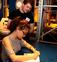 Begleitend zum Lernlabor "Technikland" finden im Museum Industriekultur verschiedene Physikworkshops für Kinder und Jugendliche statt (Foto: HJKrieg, hl-studios, Erlangen): Studierende…