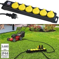 Per Knopfdruck alle Elektro-Geräte vom Stromnetz trennen revolt Schaltbare 6-fach-Outdoor-Steckdosenleiste, IP44- Ideal für Baustelle, Garten, Keller, Werkstatt u.v.m. - Spritzwassergeschützt…