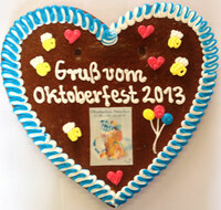 Das Lebkuchenherz wird innerhalb 30 Minuten am Oktoberfest 2013 individuell beschriftet, auch Werbelebkuchen mit Logo oder Foto können in jeder…