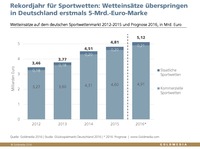 Goldmedia veröffentlicht Studie "Glücksspielmarkt Deutschland 2016" © Goldmedia 2016. Wetteinsätze auf dem deutschen Sportwettenmarkt (in Mrd. Euro) 2012-2016Berlin, 08. Juni…