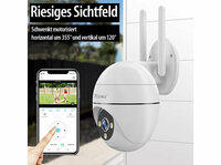 Einfahrt, Hof und mehr hochauflösend im Blick behalten 7links 2K-Pan-Tilt-Überwachungskamera IPC-390 V2, 360°, Nachtsicht, IP65, WLAN, App, www.pearl.de- 3-MP-Sensor für…