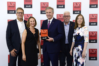 Stuttgarter Software-Beratungshaus nimmt Preis von Christian Wulff entgegen. v.L. Markus Balzuweit, Ilonka Balzuweit, Christian Wulff, Peter Balzuweit, Miriam Arnold-Wurst (Bildquelle:…