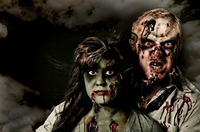 Bad Säckingen, 15.März 2013. Prüfend schaut Sandra Untenberger, Chef-Make-up-Artist beim Non-Profit-Horror-Event "Prison of Terror", den Darsteller an, der vor ihr…